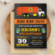 Amaze your guests with this cool trash bash birthday party invite featuring an orange dump truck with modern typography against a chalkboard background. Simply add your event details on this easy-to-use template to make it a one-of-a-kind invitation. Flip the card over to reveal a vibrant yellow and black stripes pattern on the back of the card.