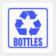 Recycling sign blue bottles square sticker