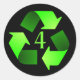 Black sticker with green #4 recycling symbol.