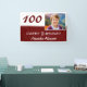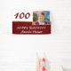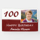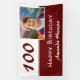 Red 100th Birthday Party Photo Backdrop Banner. This modern 100 years milestone birthday backdrop is in dark red and white colours. Add your photo, personalise with your name and any text on the banner.