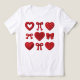 Make a bold yet feminine statement with this unique red hearts and bows t-shirt. Featuring a stunning variety of textures—including intricate embroidery styles, knitted patterns, and polka dot details—this design brings a high-end, tactile look to your everyday wardrobe.