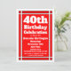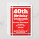 Send out invitations to a 40th birthday celebration with this Red 40th Birthday Invitation. It can be customised with your personal information.
