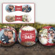 Celebrate your amazing dad and honour him with this personalised baseball printed with four photos of you and dad, and the year he became the world's greatest dad! The text printed on the customisable photo baseball is a white varsity font against a red background.