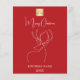 Red background, and a white abstract one line reindeer. Personalise and add a your business logo, name and year. Text: Merry Christmas.