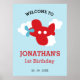 Simple red aeroplane boys birthday / baby shower welcome sign.