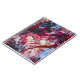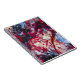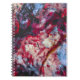 This red agate crystal geode inspired abstract design features bright scarlet red, deep ruby red, black, cerulean blue and creamy off-white shades.