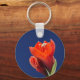 Keychain / key ring with photo of red amaryllis flower with dark blue background