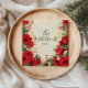 A festive Christmas design framed with vibrant red amaryllis, holly leaves, and lush greenery. The bold flowers and rustic accents create a warm seasonal look, perfect for sharing holiday cheer with friends and family.