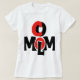 A minimalist graphic design features the word "MOM" prominently displayed in bold black, slightly rounded sans-serif capital letters. Above the central "O," there is a stylised red element that appears to be a partially filled circle or a curved shape, adding a touch of colour and abstract design to the composition.