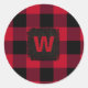 Red and Black Buffalo Check Monogram Classic Round Sticker
