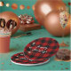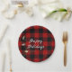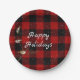 Red and black buffalo Happy Holidays in snow Paper Plate