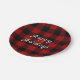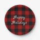 Red and black buffalo Happy Holidays Paper Plate