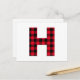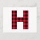 Red and Black Buffalo Plaid Bold Letter H Monogram Postcard