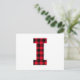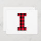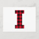Red and Black Buffalo Plaid Bold Letter I Monogram Postcard