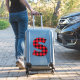 Create a decorative luggage sticker for the newlyweds on their honeymoon.