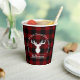 The product design features a silhouetted profile of a reindeer on a classic red and black buffalo plaid pattern. Combined with your own personalised text, this composition makes farmhouse country-style, modern, and unique paper cups for Thanksgiving, Christmas holiday, family reunion, or any other special gatherings!