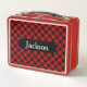 Red and Black Buffalo Plaid Monogram Metal Lunch Box