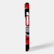 Customise this red, black, grey and white camouflage iPhone 15 pro case with your name in a trendy modern CAP font in black on grey. It's masculine and perfect for your favourite military, hunting, country or outdoorsman!
