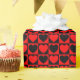 A wrapping paper built with a red and black chequered pattern with hearts. Customise the black background colour among several options.