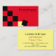 Make a lasting impression with this cool and modern business card design featuring red and black chequered pattern and the backgrounds are red and cream - yellow.