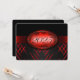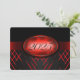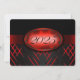 Red and black graduation party invitation with light and dark red stripes and a red ribbon going across showing the year of graduation. The back of the card is black with light red font for people to fill in the graduation party invitations.