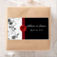 Red and Black Damask Red Gerbera Daisy, Wine Label. Customise text and font to suit your event or occasion.
