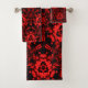 A bright, bold, red and black abstract pattern inspired by a floral photograph adorns these soft, cozy towels
