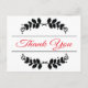 Say Thank you with style! This charming thank you postcard features a black floral leaf frame with a contrasting vibrant red thank you greeting highlighted against a crisp white background.