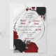 elegant black and red flowers with grey leaves wreath wedding invitation