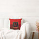 Ms. Monogram's red and black buffalo plaid throw pillow design features your monogram in red and black buffalo plaid set on a black square inside of a burlap accent border. The background is half matching large red and black buffalo plaid and half solid red. #BuffaloPlaid #Gingham #Monogram