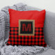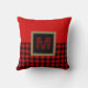 Red and Black Gingham Buffalo Check Monogram Cushion