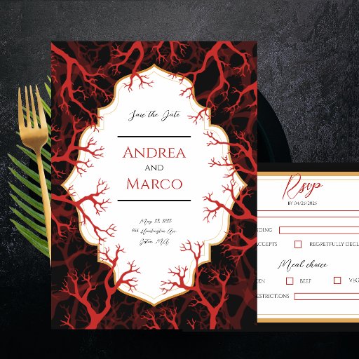 Make a statement at your non traditional wedding with black and red gothic wedding invitations. Perfect for a Halloween wedding or hallowedding, these affordable and stylish cards will let your guests know you're throwing an unforgettable event. Get ready to set the tone for your special day with true rock and roll wedding save the dates!