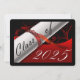 Red and black graduation card with a diploma and year of graduation on it. The back is a black background with red lettering for the graduation annoucements.