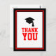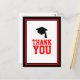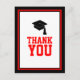 Say Thank You with this Red and Black Graduation Party Thank You Postcard. It features 'Thank You' in red and a black grad cap surrounded by a black and red border. The back is blank for your personal message.
