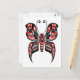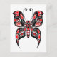 This unique design features a Haida inspired butterfly. The Native pattern depicts a tribal butterfly design that is comprised of flowing lines and elegant shapes. The butterfly wings spread out of each side of the pattern which creates a symmetrical design. This beautiful pattern is a stylish representation of this wonderful flying creature.