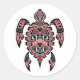 Red and Black Haida Spirit Sea Turtle Classic Round Sticker