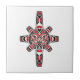 Red and Black Haida Sun Mask on White Tile