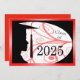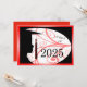 A silhouette of a young man in his cap and gown. Floral designs in the background. The back has a red background with black lettering for the graduation announcements.