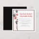 This reception-only wedding invitation features a modern, minimalist design with soft romantic accents. A clean white background is framed by a subtle double border in red and black, while a graceful botanical illustration rises along one side with slender black stems and delicate red leaves. Elegant script typography is paired with classic serif text, creating a refined and easy-to-read layout. The overall palette of red, black, and white feels polished and contemporary, making this invitation ideal for a stylish, reception-focused celebration. Personalize with your own information.