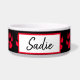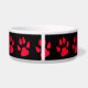 Add your dog's name to this cute red and black paw print dog bowl.