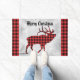 Personalise this Unique "One of a Kind" Red and Black Plaid Bull Elk Christmas Doormat! It Features a Bugling Bull Elk Silhouette in Red and Black Plaid on a White Christmas Background...Surrounded by Red and Black Buffalo Plaid Borders and the Festive Words...."Merry Christmas"!