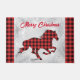 Personalise this Unique "One of a Kind" Red and Black Plaid Horse Christmas Doormat! It Features a Galloping Horse Silhouette in Red and Black Plaid on a White Christmas Background...Surrounded by a Red and Black Plaid Borders!