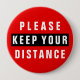 Modern Please Keep Your Distance Badge Featuring White lettering on a red and black background.