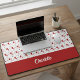 Red and Black Retro Hearts Monogram Name Desk Mat