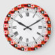 Red and Black Rooster Chickens and Hearts Pattern Large Clock