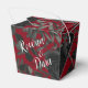 Our black and red floral rose gothic wedding favour boxes are made to match out Gothic Red & Black Rose Wedding Collection. Dark black and deep red contrast with an abundance of dark floral motifs. Script font paired with serif font, lends to an artistic look that matches well with gothic style.