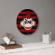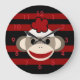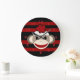 Red and Black Striped Sock Monkey Girl Flower Hat Large Clock