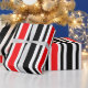 This wrapping paper is covered with red and black stripes. Good for many occasions.