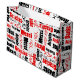 This large gift bag is designed with a red and black word cloud design of the word Thank You in several languages. Select a background colour other than white.