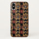 This iPhone X case presents a repeating design of wine bottles in a wooden wine rack. A rustic brick wall background completes the abstract pattern.